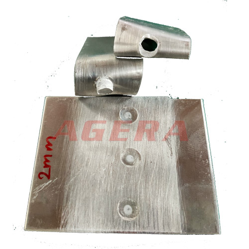 此焊接產品為2+2mm鋁板點焊焊接產品,采用安嘉自動化中頻直流逆變點焊機,安嘉焊接工藝工程師調整好合適的焊接工藝參數,上下電極夾緊焊接而成,焊接成型后,熔合好,破壞試驗可以拉穿母材。