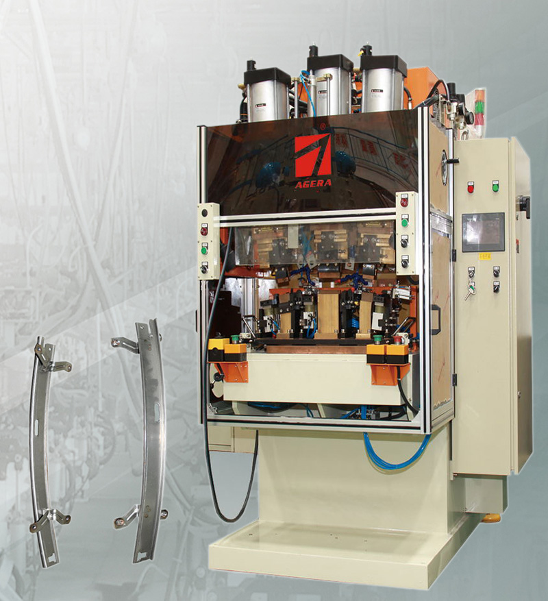 1、汽車玻璃升降導(dǎo)軌專用焊接設(shè)備,可以通過更換不同工裝進行多種工件的焊接,工裝更換快速方便;