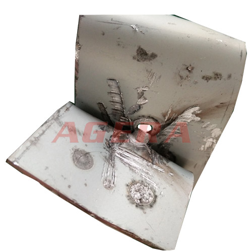 此焊接產品為鍍鋅板點焊拉穿測驗樣品,采用安嘉自動化中頻直流逆變點焊機進行焊接,中頻焊機控制器經過IGBT逆變,頻率可達1000HZ,焊接時間ms級控制,次級回路直流輸出,阻抗小,焊接電流穩定。焊接出來工件牢度強,表面壓痕小,在破壞試驗時焊點可以拉穿母材。