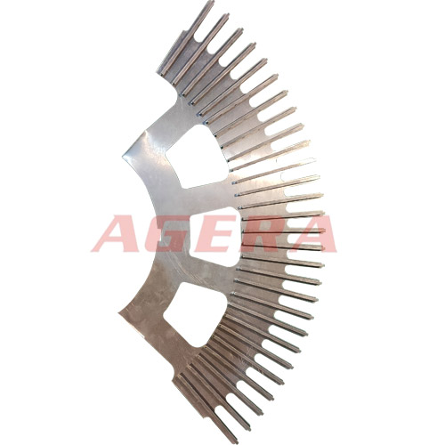 此焊接產品為風電電機槽片凸點焊產品,采用安嘉自動化中頻直流逆變點焊機焊接,專用夾具定位焊接,焊接效率高,進口IGBT控制模塊將電源頻率升至1000HZ,時間ms級控制,次級直流輸出,阻抗小,熱量集中,焊接強度高,變形小,拉拔試驗凸點可拉穿母材。
