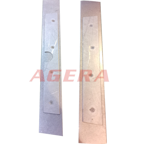 此焊接產品為高強鋼鋁硅涂層補丁板點焊產品,采用安嘉自動化中頻直流逆變點焊機焊接,專用夾具定位焊接,焊接效率高,進口IGBT控制模塊將電源頻率升至1000HZ,時間ms級控制,次級直流輸出,阻抗小,熱量集中,焊接強度高,變形小,拉拔試驗凸點可拉穿母材。