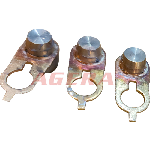 此產品為黃銅導電嘴釬焊產品,采用安嘉自動化中頻直流逆變點焊機焊接,下電極做好焊接夾具,一次可以裝夾多個焊接產品,IGBT控制系統將電源頻率升至1000HZ,時間ms級控制,次級直流輸出,阻抗小,熱量集中,焊接強度高,變形小,效率高,頂推試驗達到客戶使用要求。以下是焊接此產品的焊機,要了解焊機詳情介紹,請點擊以下產品圖片。