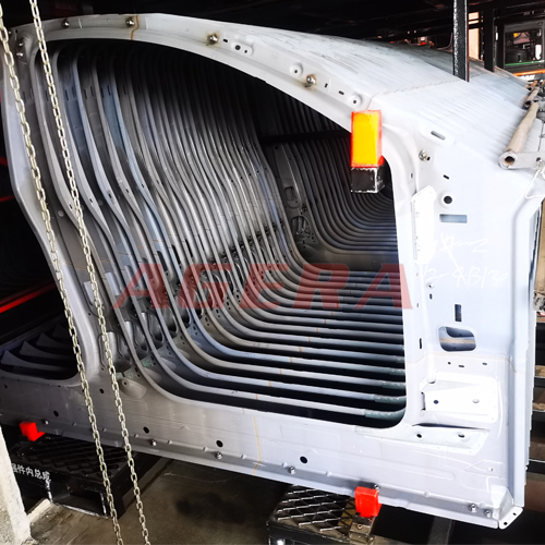 此焊接產(chǎn)品為一體成形門(mén)環(huán)點(diǎn)焊產(chǎn)品,采用安嘉自動(dòng)化雙焊鉗機(jī)器人工作站自動(dòng)點(diǎn)焊補(bǔ)丁板,配以雙工位轉(zhuǎn)臺(tái),兩把機(jī)器人焊鉗通過(guò)仿真按最優(yōu)路線(xiàn)同步點(diǎn)焊,轉(zhuǎn)臺(tái)工裝采用傾斜形式,滿(mǎn)足焊接的同時(shí)節(jié)省了機(jī)器人的運(yùn)行空間,補(bǔ)丁板焊接后焊核穩(wěn)定、強(qiáng)度好。