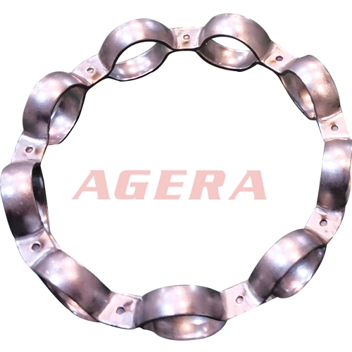 此焊接產品為軸承保持支架凸焊產品,采用安嘉自動化中頻直流逆變點焊機焊接,專用夾具定位焊接,焊接效率高,進口IGBT控制模塊將電源頻率升至1000HZ,時間ms級控制,次級直流輸出,阻抗小,熱量集中,焊接強度高,變形小,拉拔試驗凸點可拉穿母材。