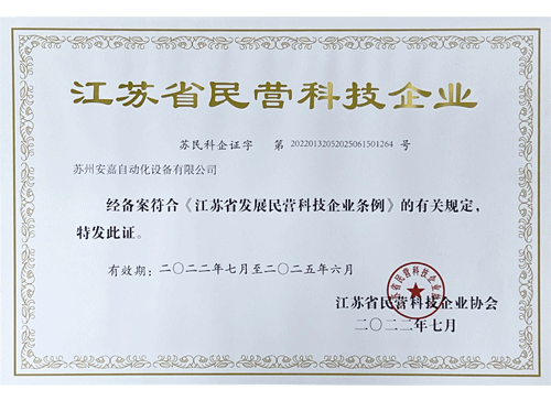 2022年省級專精特新企業-蘇州安嘉